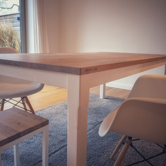 Das Gestell des SOLIDEN ist komplett handgearbeitet. Der Vollholzrahmen ist immer aus dem gleichen Holz gearbeitet, wie die Tischplatte, die du dir aussuchst. Das in weiß gehaltene Gestell macht den SOLIDEN zu einem echten Hingucker. Aber auch hier hast Du die Qual der Wahl und kannst dich farblich austoben - alle Farbkombinationen sind hier möglich.